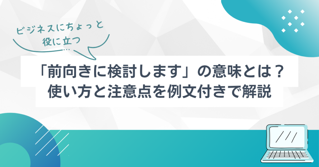 「前向きに検討します」の意味とは?使い方と注意点を例文付きで解説