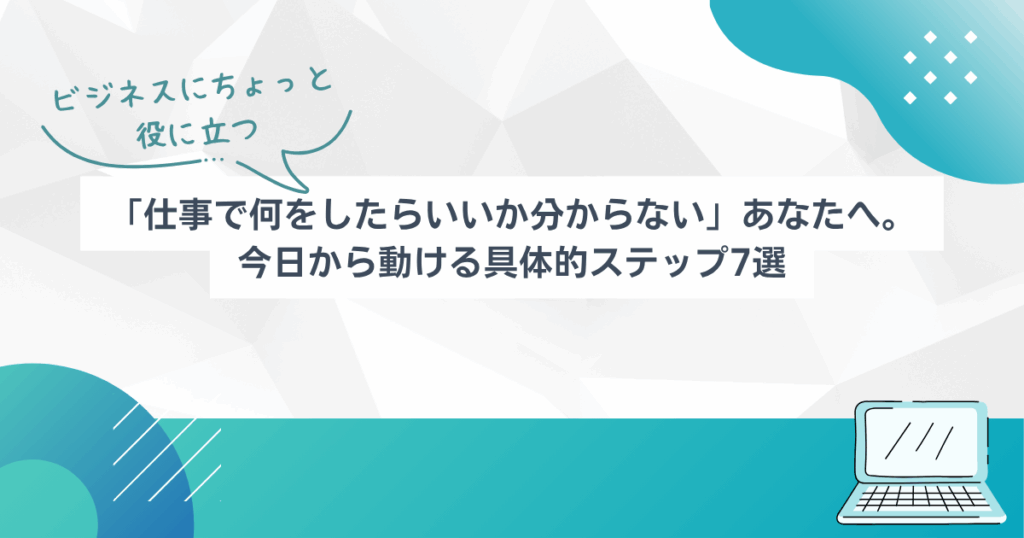 「仕事で何をしたらいいか分からない」あなたへ。今日から動ける具体的ステップ7選