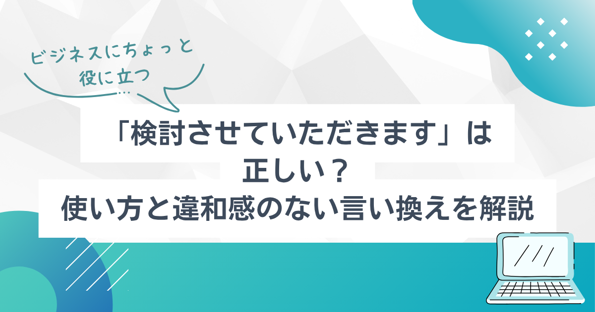 この記事では、「検討させていただきます」が正しいのかを整理しながら、違和感が出やすい理由、自然な言い換え、使い分けのポイントをわかりやすく解説します。