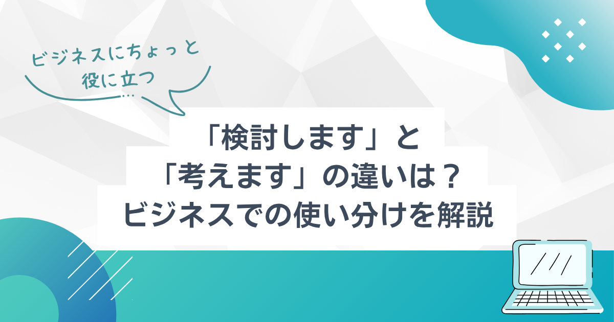 この記事では、「検討します」と「考えます」の違いを整理したうえで、それぞれが向いている場面やビジネスでの自然な使い分け方を解説します。
