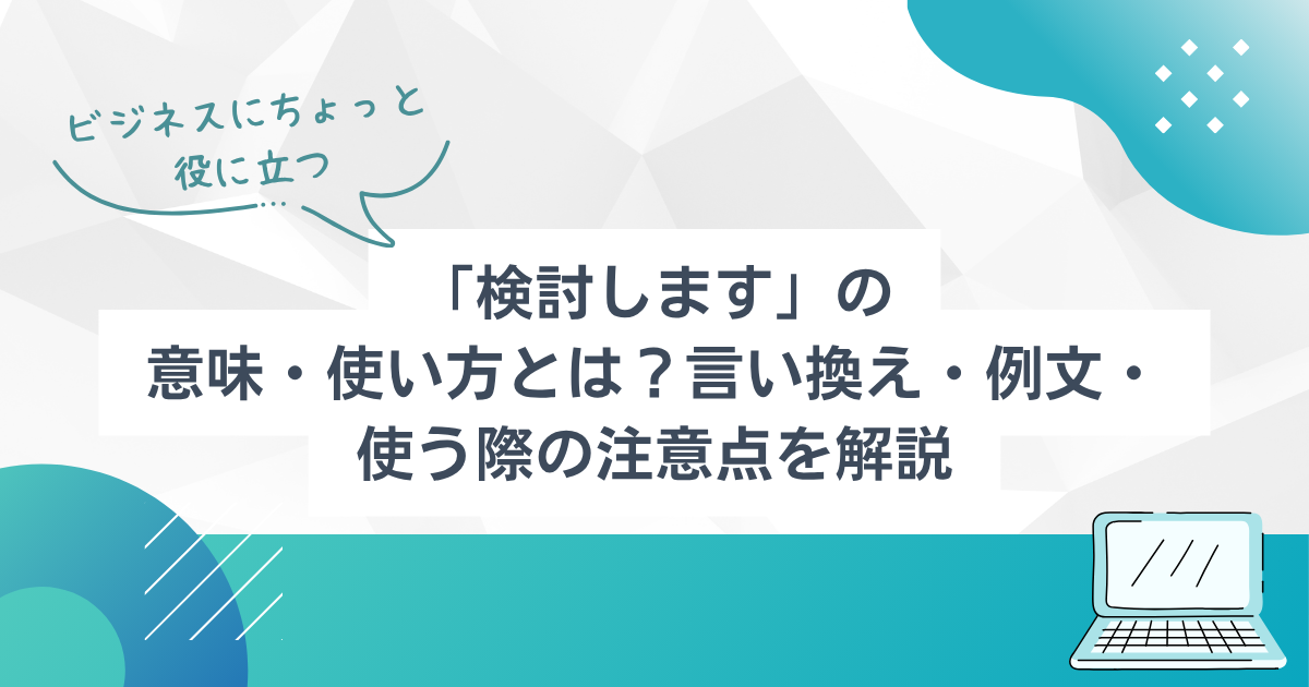 「検討します」は、ビジネスシーンでよく使われる表現のひとつです。ただ、何となく使っているものの、「どこまで前向きな意味なのか」「目上や取引先に使っても問題ないのか」と迷う方も多いのではないでしょうか。