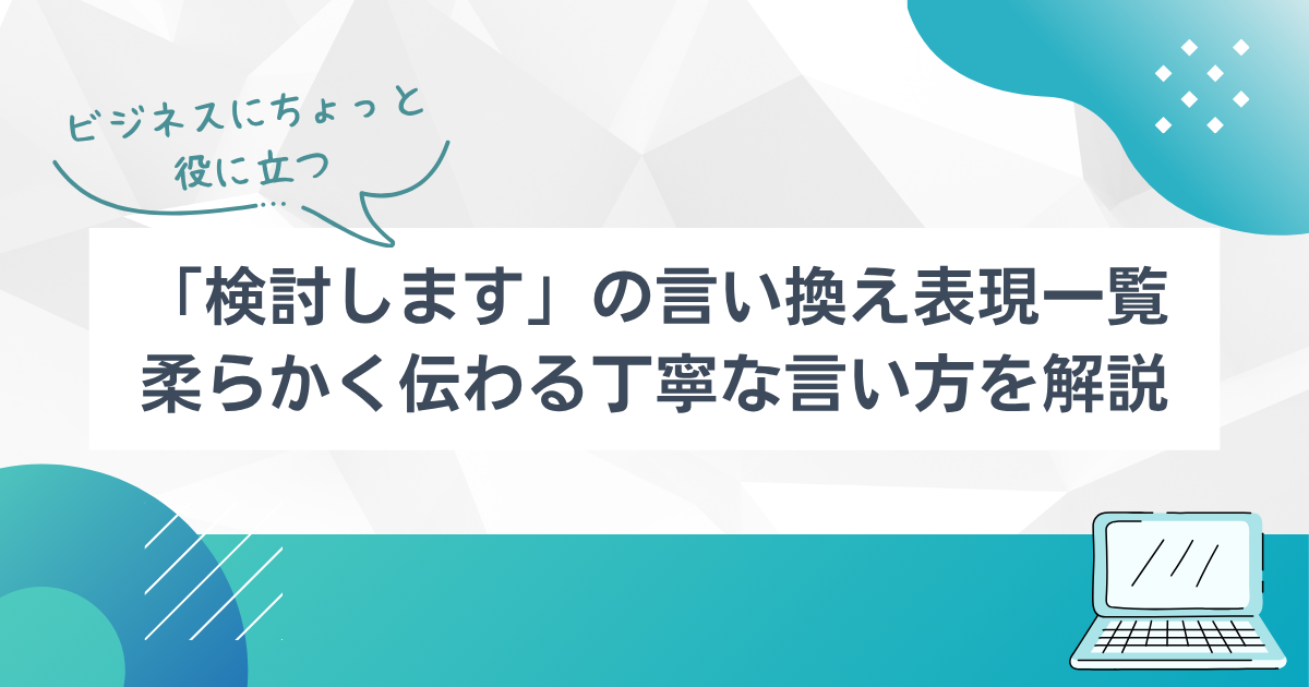 「検討します」は便利な表現ですが、何度も使うと単調に見えたり、少し硬い印象になったりすることがあります。相手や場面によっては、もう少し柔らかい言い方や、丁寧さのある表現に言い換えたいと感じることもあるでしょう。