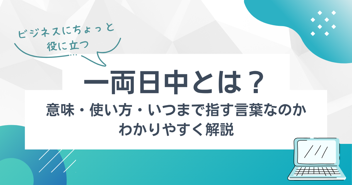 ビジネスメールや正式な通知文で見かけることの多い「一両日中」という表現。日常会話ではあまり使われないため、いざ目にすると「いつまでのこと?」「今日も含まれるの?」と疑問に感じる人も多いのではないでしょうか。